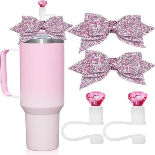 The glitter bow straw topper makes your Stanley glass look very cute, and the brightly colored artificial diamond add a touch of charm and sparkle to your glass. Add glitter to the back of the bow for a more cohesive and visually appealing look, making your Stanley cup unique and eye-catching! Especially when it’s sparkling outside in the sunshine!